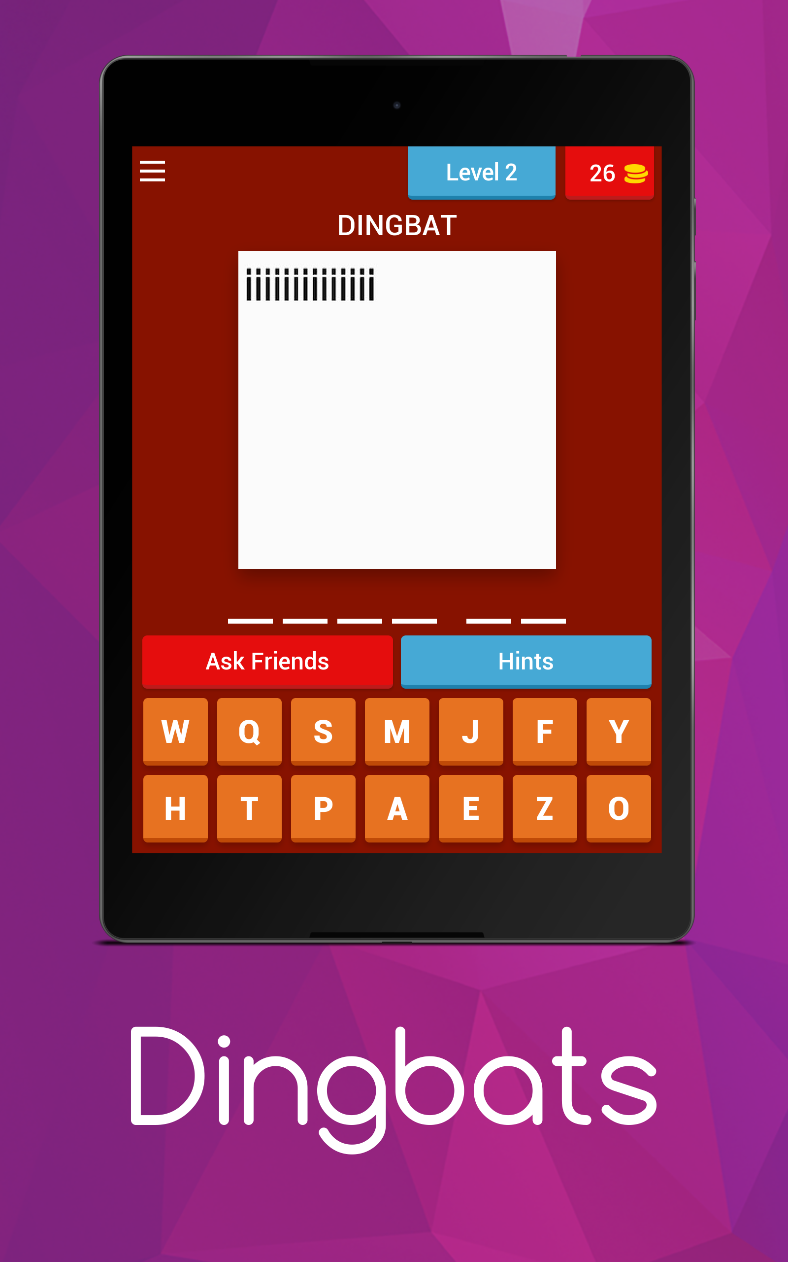 Dingbats level 26 Dingbats - Word Trivia level 26 solution answer solutiondingbatsdingbats-26. Dingbats Word Trivia Game Answers 21-40. Some levels are really difficult in.